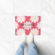 Ventilatormat met bloemen en aangepaste welkomsttekst en citeer als 'Thuisvriendelijk thuis'. Maak je eigen aangepast grappige doormat met een aangepaste kleur achtergrond die koraal roze is. Voeg uw eigen welkomstbericht, familienaam, monogram, achternaam of grappig citaat toe. Cute gift idee voor vrienden en familie met een nieuw thuis/huisopwarmingsfeest. Aangepaste kleur achtergrond. rustige landschapskisttikanteltypografie. sjabloon van het doormatbord. Creëer je eigen mat / tapijt voor de voordeur / ingang of de hal / trouwplaats . decor/decoratie voor huis in de openlucht voor uw huis. Verkrijgbaar in kleine en grote afmetingen.