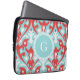 Matig monogram van het rode ikattribaal laptop sleeve