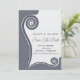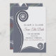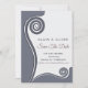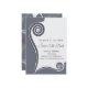 De platte kaart draagt het bericht om onze trouwdatum op te slaan. Mauve gekleurde varenschijfjes versieren het briefpapier. Het is een symbool dat geassocieerd wordt met een nieuw begin. Koru is het Nieuw-Zeelandse Maori woord voor het ontrollen van varenschijfjes, en gestileerd in wervelbewegingen.