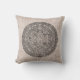PILLOW BEKIJKT de Aztec zonkalender, die een cirkelsteen is met afbeeldingen die vertegenwoordigen hoe de Azteken dagen, maanden, en kosmische cycli, in een transparant PNG- dossier tegen een faux linnen burlap textuur gemeten.