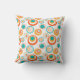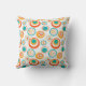 Dit kussen heeft een middeleeuws ontwerp van concentrische cirkels in goud, sinaasappel en turquoise op een witte achtergrond.