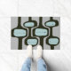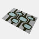 Retro Welcome Mat - Retro Atomic Age Mid-Century Modern Print in blauw en grijs. Deze mat is geschikt voor uw entree of overdekte veranda, het toevoegen van een element van retro stijl. Verkrijgbaar in verschillende maten om aan uw huisdecoratiebehoeften te voldoen. Deze deurmatten maken een geweldige gepersonaliseerde housewarming, verjaardag, moederdag, vaderdag, Kerstmis en makelaarscadeaus.