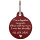 Faites une déclaration avec notre étiquette d'identification d'animal de compagnie en parties scintillant rose chic Giraffe et laissez briller votre compagnon de fureur! L'avant de l'étiquette présente le nom de votre animal en texte blanc mignon, magnifiquement complété par une jolie parties scintillant rose Giraffe imprimé. Retournez-le, et vous trouverez une citation personnalisable, "Je suis un romantique désespéré. Appelez ma mère, elle me manque terriblement !" en adorables polices blanches. Vous pouvez également choisir de personnaliser le tag avec votre propre message et numéro de téléphone. Conçu pour la durabilité, ce tag est l'accessoire parfait pour tout chien mignon et drôle !
