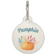 Un tag personnalisé idéal pour un chien ou un chat nommé citrouille. Conçu avec une aquarelle illustrant un citrouille orange décoré de feuilles et de sprigs d'automne colorés.