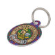 Clan MacDonald badge crête entouré d'une sangle et boucle sur l'arrière - plan tartan. Texte personnalisé des deux côtés.