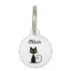 L'étiquette d'animal de compagnie super cool montre un chat noir mignon avec une longue queue bouclée, assis. Ce félin a les yeux verts. Customisez le nom à l'avant et l'adresse à l'arrière. Pour un chat, un chaton, un chaton, un tomcat, un animal ou un autre animal. Ce chat génial a une attitude. Purfection.