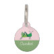 Cette étiquette d'identification d'animal de compagnie comporte un cricket vert joyeux dressé contre un arrière - plan rose et vert sauge doux, complétant la nature ludique de l'étiquette. La zone de personnalisation est clairement désignée, prête à être customisée avec le nom d'un animal de compagnie dans une police fluide et facile à lire. L'étiquette allie charme léger et fonctionnalité, assurant ainsi l'identification d'un animal de compagnie dans le style.