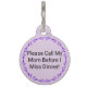 Ce Balise Call My Mom est parfait pour les chiens ou les chats qui aiment leur nourriture. Customisez avec votre propre numéro de téléphone au dos.
