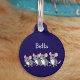 Cette étiquette personnalisée d’identification de chat présente un dessin de souris de dessin animé mignon et le nom de votre chat, sur un arrière - plan bleu foncé élégant. Que ce soit pour votre animal de compagnie ou comme cadeau unique pour les amoureux de les chats, cette étiquette combine humour et style. Personnalisez le dos avec votre adresse et numéro de téléphone ou autre texte.