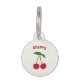 Une étiquette d'animal de compagnie beige clair avec une illustration de cerises, ses feuilles verts et texte personnalisable au-dessus et au-dessus ! Obtenez-le pour votre nouvel animal de compagnie ou en cadeau pour une famille qui accueille un nouvel animal de compagnie!