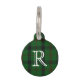 Étiquette de chien décorée d'un monogramme d'amusement avec l'avant fait en vert, noir, et motif rouge de plaid de Kincaid de clan, avec un grand monogramme de lettre du blanc un. Le dos de l'étiquette est fait en vert, avec le texte blanc. Personnalisez le monogramme et le texte sur de nouveau au costume vos besoins.