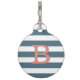 Médaillon Pour Animaux Étiquette Preppy Striped Slate Blue Monogram ID Ch