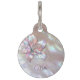 Fleur métallique Holographi sur une mère d'arrière - plan perle. Customisez-le avec le nom de votre animal de compagnie, votre nom, adresse et numéro de téléphone.