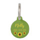 Illustration de Destei d'un joli tournesol jaune de couleur arrière - plan verte. De l'autre côté, il y a des zones de texte personnalisables pour le nom de l'animal de compagnie et pour le numéro de téléphone du propriétaire en couleur jaune avec trois petits tournesols.