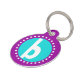 Cette étiquette d'animal familier de monogramme de rond comporte une initiale graphique de la lettre minuscule A sur un pourpre et un arrière - plan bleu d'aqua, entourés par un cercle des points blancs. Entièrement personnalisable ! Ajoutez le dos personnel de l'information de votre chien dessus, ou le supprimez si vous préférez.