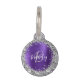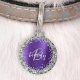 Médaillon Pour Animaux Monogramme Pailleté Argent Métal Brossé Violet