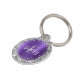 Cette élégante plaque d'identification personnalisée pour animaux de compagnie présente le monogramme initial et le nom de votre animal de compagnie dans un script moderne gris et blanc sur un fond en métal brossé violet encadré par de fausses paillettes argentées. Ajoutez votre numéro de téléphone au verso.