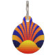 Sun Graffiti brique mur est une oeuvre d'art numérique avec un dégradé bleu foncé arrière - plan et jaune rouge orange dégradé soleil au fond, rayons de soleil rayonnant vers le haut et vers l'extérieur.