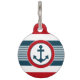 Design nautique avec décoration d'ancre en forme ronde sur bleu, rouge et blanc rayé arrière - plan