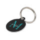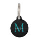 Médaillon Pour Animaux Noir Turquoise Monogramme Feminine Nom du script