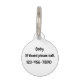 Nom et numéro de téléphone de l'image de votre animal. La police peut être modifiée en cliquant sur le bouton "Modifier le design".