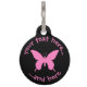 Papillon ulysse rose. Icône vectorielle avec couleur personnalisable. Couleur de fond personnalisée. Deux champs de texte personnalisés sur un cercle. Texte personnalisé au verso.