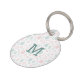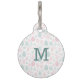 Balise à deux côtés avec un motif sans soudure de gouttes de pluie dans différentes couleurs pastel douces avec un monogramme personnalisé. Le dos contient le nom du chien et le numéro de téléphone du propriétaire dans une police sans serif.