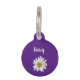 Mention d'identification de animal de compagnie Cute Kitty Cat, avec une marguerite blanche sur un arrière - plan violet. Avec des lettres personnalisables en blanc, vous pouvez ajouter vos propres informations. Le dos vous permet d'ajouter votre nom et votre numéro de téléphone si votre animal se perd. Parfait pour ajouter un style tendance à la mode de votre animal de compagnie !