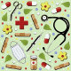 Creatief stropdas met een medisch thema met een patroon van zorgbenodigdheden.