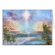 Paysage marin coloré beau par pastel avec les palmiers, la lumière rayonnante de dauphins de vagues, de sauter et le meditator s'asseyant. Par Daniel B. Holeman.