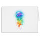 Grande méduse irisée, artistiquement dessinée, brillante, avec de longues tentacules sur le blanc, peinte sur l'arrière - plan multicolore. Méduse arc-en-ciel.