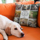 Coussin de fête des pères mignonne avec 8 photos de famille de votre animal de compagnie, le mignon disant "le meilleur papa chien du monde", un empreinte de patte, et le nom du chien.