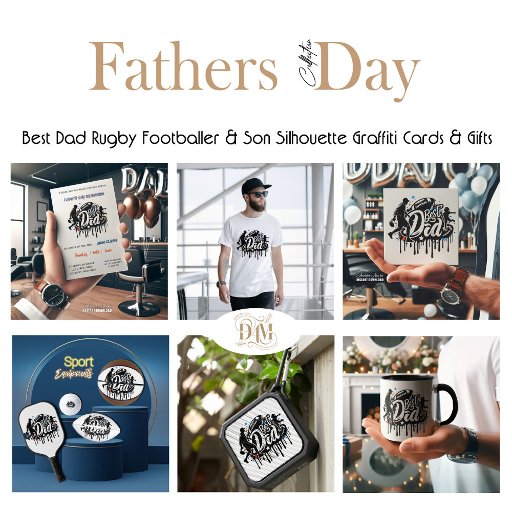 Meilleure carte de Noël graffiti pour papa et fils, football. Le design présente un graffiti moderne à l'écriture manuscrite noire dégoulinante avec la silhouette d'un papa footballeur jouant au football avec son fils. Cadeau idéal pour un papa actif et sportif qui aime le football et le rugby. Vous pouvez ajouter le nom du père, c'est une idée parfaite pour créer un cadeau personnalisé unique pour votre papa, grand-père, mari.