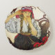 Meisje en Geranium, Alphonse Mucha Sierkussen Rond Kussen