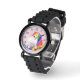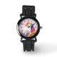 Dit schattige en meisjesachtige kinderen horloge heeft een schattige, handbeschilderde waterverf regenboog eenhoorn op een roze achtergrond. Dit mooie kleurrijke ontwerp beschikt ook over een plek voor u om de naam van uw meisje toe te voegen. Met duidelijke, gemakkelijk leesbare nummers is dit 'eerste' horloge geweldig voor diegenen die net beginnen met het leren van de tijd. Het perfecte magische ontwerp voor je kleintje!