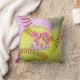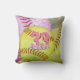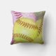 Meisjes 'softball gooi kussen met felgele en roze softballen met een lichte grungy textuur effect en haar naam en trui nummer - door katz_d_zynes