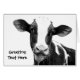 Een poster afbeelding van een jonge holstein melkkalf. Zwart-witte, vlekkige, gepatterde baby koe met heldere ogen en wazige whiskers.