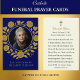 Cette carte de conservation funéraire catholique présente un design révérencieux avec des roses brodés en or et des coeurs encerclant une photo de votre être cher, dressée contre un arrière - plan bleu marial profond. L'envers comprend une prière catholique traditionnelle pour le repos de l'âme, invoquant l'intercession de la Bienheureuse Vierge Marie et des Saints. Un hommage sacré et personnalisé, parfait pour honorer une âme fidèle et partager avec sa famille et ses amis à la messe funéraire ou au service commémoratif.
