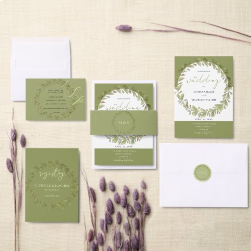 Menu Artistic Green Watercolor Wreath peint à la main
