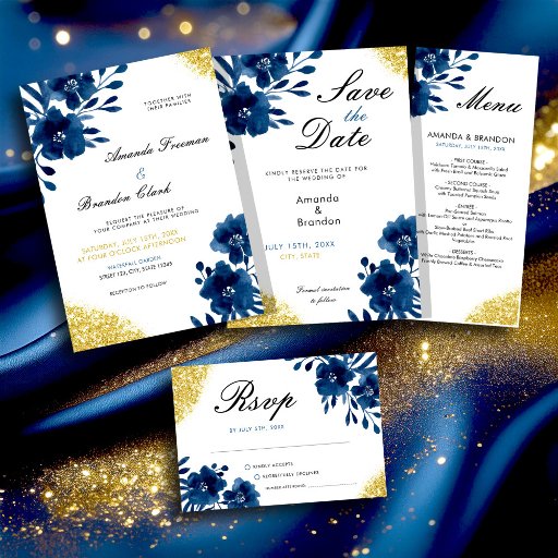 Menu Chic Navy Watercolor Flowers Mariage Parties scint