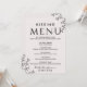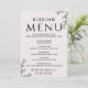 Ce menu de baiser à la typographie florale est parfait pour une réception de mariage élégante. Le design romantique présente un lettrage simple orné de fleurs, un bordement botanique et un arrière - plan subtil et blush.