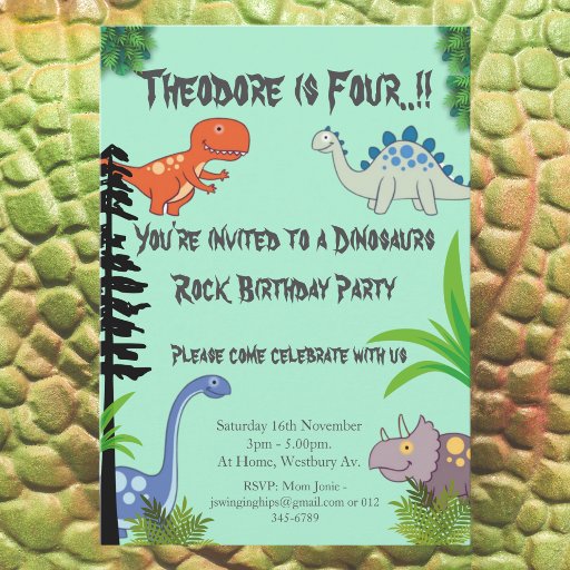 Servez-vous de plaisir préhistorique avec ce menu de Dinosaures Rock! Avec ses graphismes colorés en dinosaure, c’est la façon idéale de présenter des plats savoureux tout en ajoutant un charme ludique à la grande fête de votre petit paléontologue.