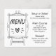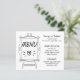 Laat je gasten weten wat je gaat serveren om te eten met deze leuke handtekenaar die zwart-wit menukaart verlicht. U kunt het menu aanpassen met uw voedselopties, doopvonten en kleuren veranderen om uw behoeften aan te passen. De zwarte en witte menu's zijn perfect voor * bruiloften, vrijgezellenfeesten * bedrijfsplechtigheden * prijsuitreikingen * partijen * feestdagen * fundraisers / liefdadigheidsinstellingen. Blader naar uitzicht overeenkomende producten die je kunt gebruiken.