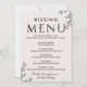 Deze florale typografie zoende menu is perfect voor een elegante trouwreceptie. Het romantische ontwerp is voorzien van een eenvoudige, met bloemen, botanische vormgeving en een subtiele blauwe achtergrond.