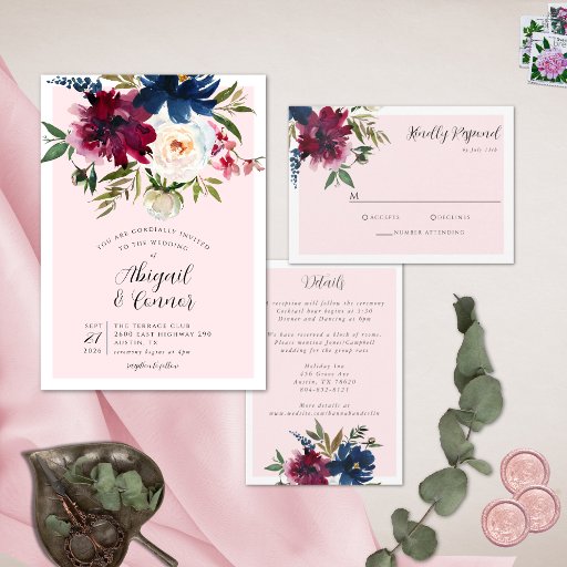 Menu Jardin enchanté Rose Blush Burgundy Navy