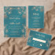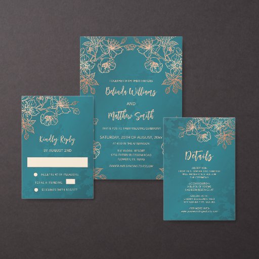 Menu Rose Gold Teal Floral Line Art Wedding