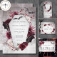 Entrez dans un royaume de romantisme sombre avec notre menu gothique ou mariage d'Halloween exquis qui allie harmonieusement élégance rustique avec une touche d'allure étrange. Décorée de fleurs roses, bordeaux et noires, cette invitation est un chef-d'oeuvre fascinant qui saisit l'essence de votre histoire d'amour unique. Sur fond de teintes bordeaux et noires en détresse, le design prend un tour envoûtant, avec des détails captivants comme des araignées délicates et des chauves-souris qui dansent à travers le design. Cet ensemble enchanteur équilibre la beauté des fleurs avec l'intrigue des éléments gothiques, créant un design aussi inoubliable que votre amour. Dévoilez votre célébration dans le style et embrassez l'extraordinaire avec un menu qui parle au coeur de votre événement à thème gothique. Laissez chaque bénéficiaire expérimenter la magie de votre syndicat dès le premier aperçu. Choisissez notre suite d'invitation pour préparer le terrain pour une journée aussi enchanteresse que captivante, captant l'attention et l'imagination de tous ceux qui la reçoivent. Il fait partie de la suite Rustique gothique Black & Burgundy Halloween mariage suite créée par Simply Farmhouse Press.
