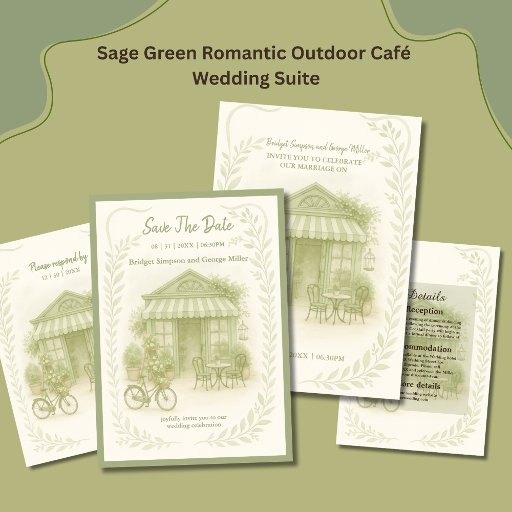 sauge vert romantique mariage extérieur café menu et programme tout en une carte Ce sauge vert mariage menu et programme tout en une carte capture l'atmosphère romantique d'un café jardin, encadré par des détails botaniques doux et le charme vintage. Les tons doux et sages apportent une sensation de calme, d'élégance et de beauté intemporelle, ce qui en fait l'endroit idéal pour les couples qui rêvent d'un mariage inspiré par la nature, les lieux de plein air ou les décors de cour rustique. La délicate bicyclette fleurie, la bordure verdoyante et le cadre charmant d'un café créent une atmosphère chaleureuse et accueillante, à la fois intime et raffinée. Ce design séduit les couples qui souhaitent des mariages romantiques, botaniques ou cottagecores. Assistée à l'IA et entièrement personnalisable, elle offre la flexibilité de s'adapter à un large éventail de produits. Les collections coordonnées permettent un thème homogène, il fait également un choix réfléchi pour les cadeaux de mariage. En achetant par l'intermédiaire de liens d'affiliation, vous supportez également mon travail créatif sans frais supplémentaires pour vous.