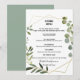 Dit tropische groene blad kissingmenu is perfect voor een eenvoudige trouwreceptie. Het ontwerp is voorzien van met de hand geschilderde, mooie groene bladeren, die een gouden geometrische lijst bijbrengen.