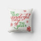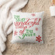 L'oreiller à jetons pour la saison des Fêtes présente notre merveilleux design de Noël avec des flocons de neige rouges et texte de typographie rouge et vert qui lit Le Temps le plus merveilleux de l'année sur le devant, un grand flocon de neige rouge et des rayures verticales rouge et blanc sur le dos!